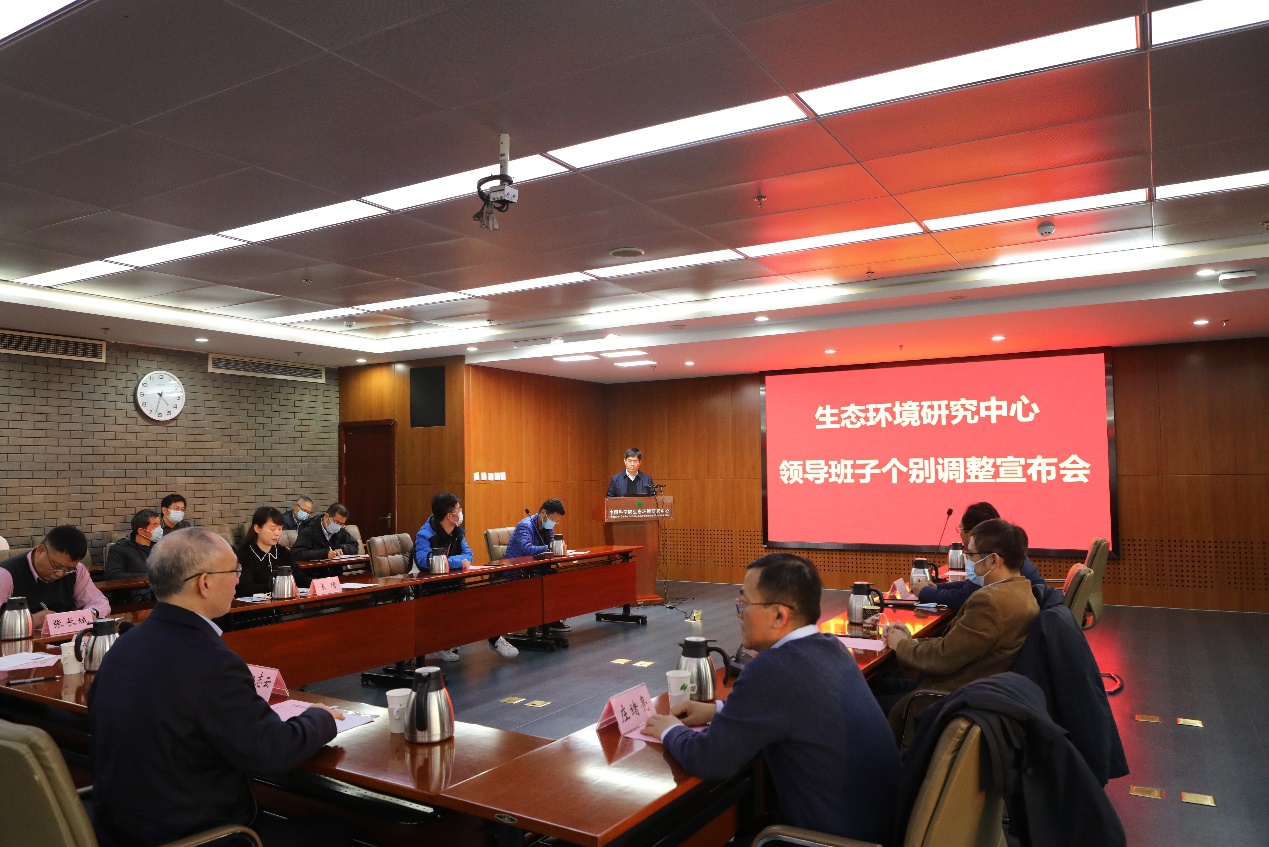 11月23日下午,中国科学院生态环境研究中心领导班子个别调整宣布会议在生态科研楼601会议室召开。中科院人事局副局长蔡宏志、中心领导班子成员、两委委员、支部书记、科研和管理骨干等出席会议。