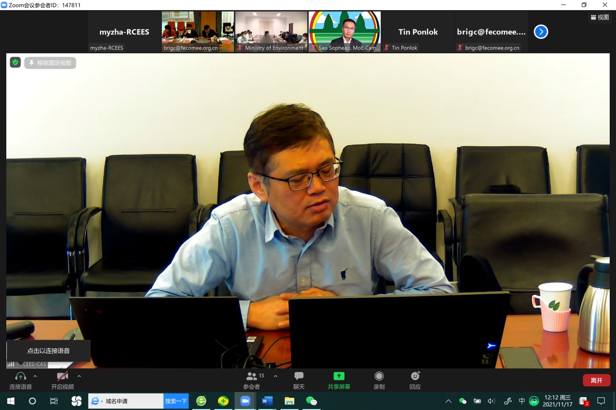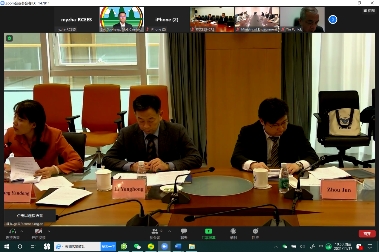 为了总结中国-柬埔寨环境合作中心2021年工作进展并做好2022年度的工作安排,中国生态环境部和柬埔寨环境部于2021年11月17日在线上联合召开了中国-柬埔寨环境合作中心筹备办公室指导委员会第四次会议。柬方代表包括柬埔寨环境部国务秘书萨索培、副国务秘书亨那列及各业务司领导10余人,中方代表包括中国生态环境部对外合作与交流中心副主任李永红、国际合作司亚非处处长周军、生态环境研究中心副主任杨敏等10余人,会议由对外合作与交流中心处长唐艳冬主持。