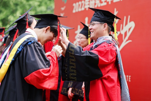 中心副主任杨敏、副主任宋茂勇分别宣读了中心2022届博士毕业生和硕士毕业生名单。中心领导和导师代表为毕业生扶正流苏,并合影留念。毕业典礼在祝福和期许中圆满结束。