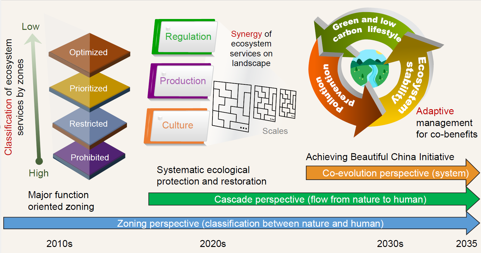 图3 从主体功能区划到一体化生态保护和修复,再到实现美丽中国的三阶段