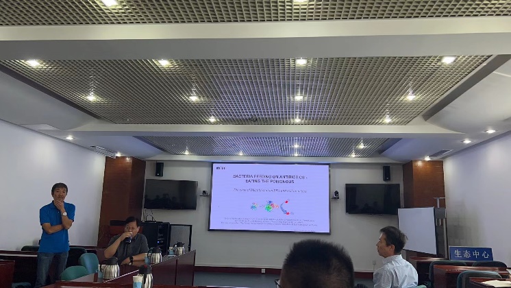 朱永官院士带来宾参观了中心展览馆,着重介绍了中心的历史沿革、杰出科学家以及突出的科研成果和社会贡献。随后,Philippe Corvini教授做了题为“Bacteria feeding on antibiotics – eating the poisonous”的精彩报告,中心师生近50人参加了交流。作为国际上杰出的污染物微生物降解研究的专家,Corvini教授的报告深入浅出、高屋建瓴,引起了与会师生极大兴趣,形成了热烈友好的讨论交流与互动共鸣氛围。