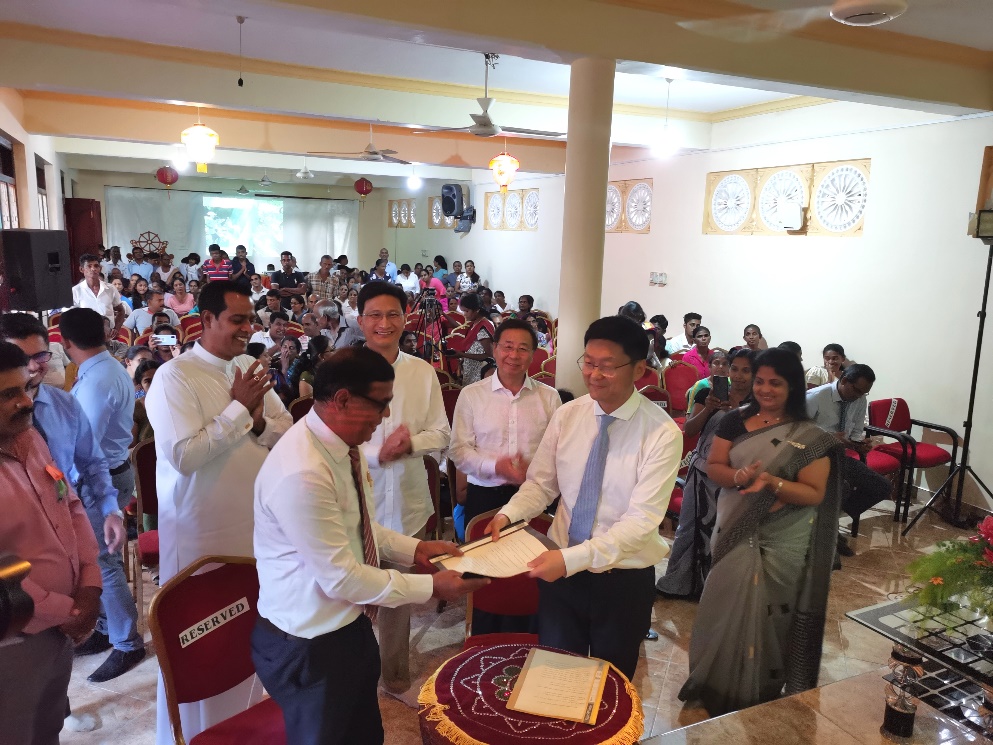 中国驻斯里兰卡大使戚振宏、斯里兰卡供水部国务部长尼杉塔(Sanath Nishantha Perera)、中国科学院国际合作局代表及当地400余名村民与僧侣共同出席启用仪式。中心副主任胡承志研究员与斯里兰卡供水部农水司司长赫拉特(H.M.Jayathilake Herath)签署了移交协议。