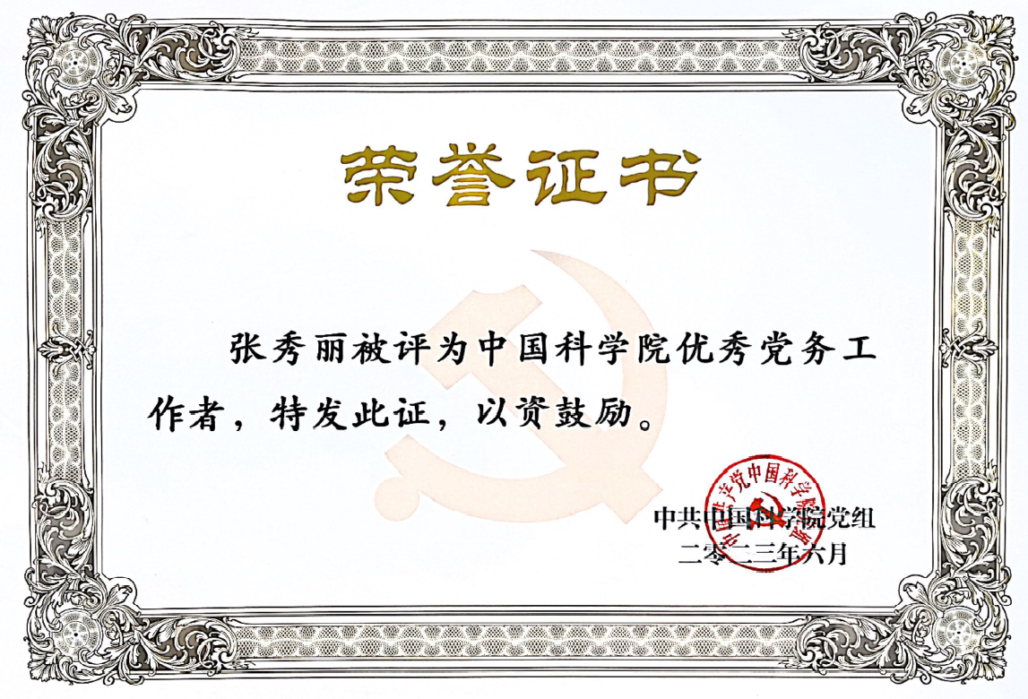 6月20日至21日,中国科学院党的建设工作会议在京召开。会上对49个中国科学院“先进基层党组织”、49位中国科学院“优秀党务工作者”、100位中国科学院“优秀共产党员”进行了表彰。中心欧阳志云同志荣获“中国科学院优秀共产党员”荣誉称号;张秀丽同志荣获“中国科学院优秀党务工作者”荣誉称号。