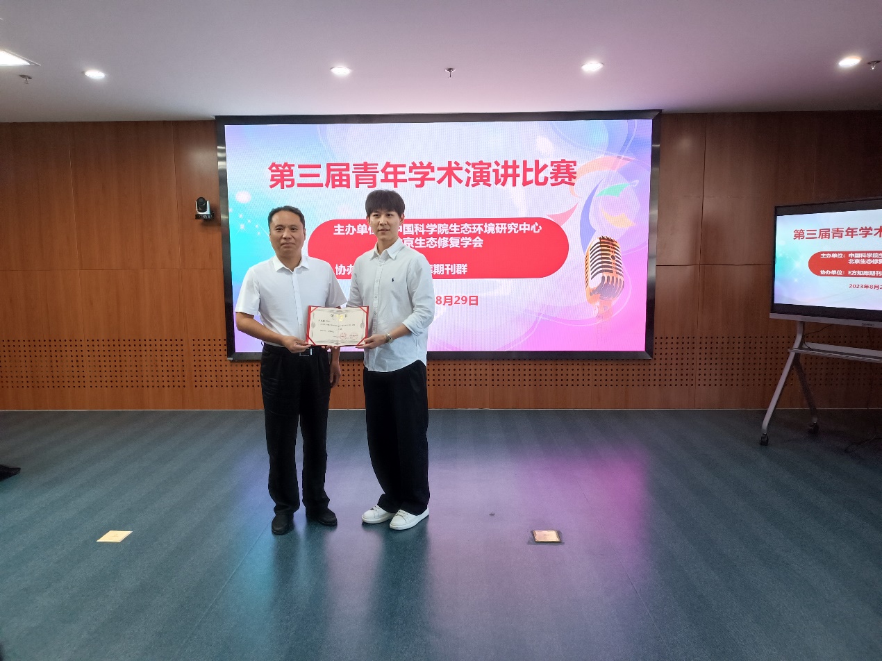 生态中心党委副书记占剑为一等奖获得者颁发证书