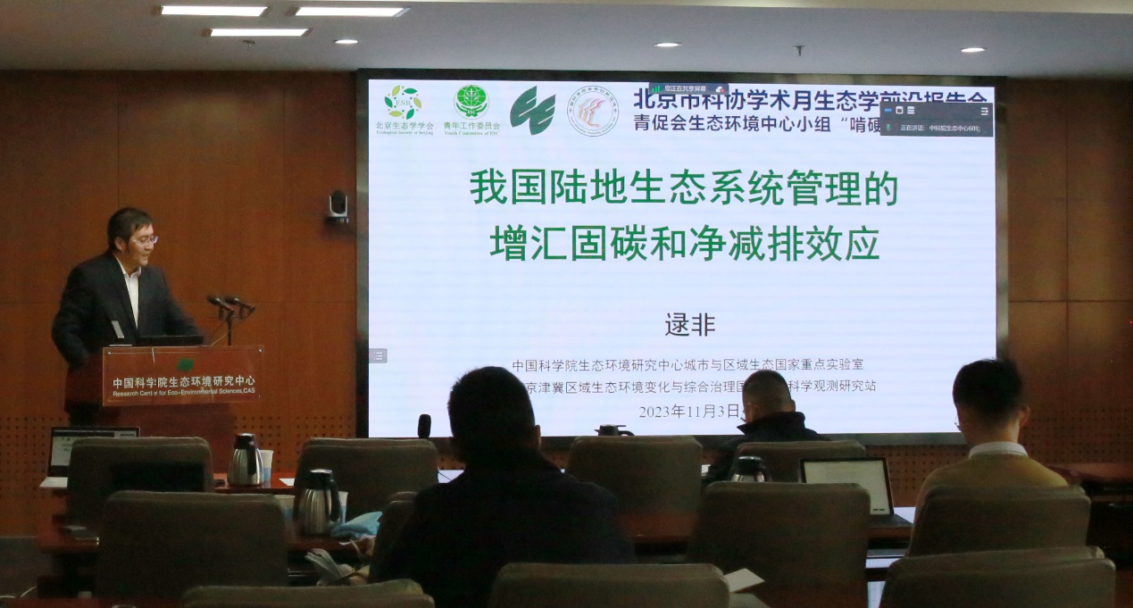 11月3日上午,北京市科协学术月生态学前沿报告会暨“啃硬骨头”系列报告第三讲——“陆地固碳措施及其碳中和贡献”在生态环境研究中心生态科研楼601会议室举办。报告会围绕“陆地固碳措施及其碳中和贡献”这一主题,邀请了中国科学院大气物理研究所于永强副研究员以及生态环境研究中心刘振刚研究员、逯非研究员,分别以“中国农田土壤有机碳变化速率与潜力” “双碳目标下生物炭材料的发展现状及前景”和“我国陆地生态系统管理的增汇固碳和净减排效应“为题进行了报告。