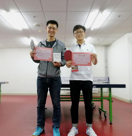 大家在一起相互交流、切磋球技,既丰富了科研生活、激发青春活力,又提高同学们的体育锻炼意识。同学们本着友谊第一比赛第二的精神尽情地在赛场上挥洒着汗水,享受乒乓球的快乐。经过两天紧张的比赛,冠亚季军的名单相继出炉。男子组的夏冬同学摘得冠军,许骐同学获得亚军,陈旸生和孔佩儒同学共同获得季军。女子组的比赛由王艺橙同学夺得冠军,颜谨同学拿到亚军,蒋君敏同学获得季军。