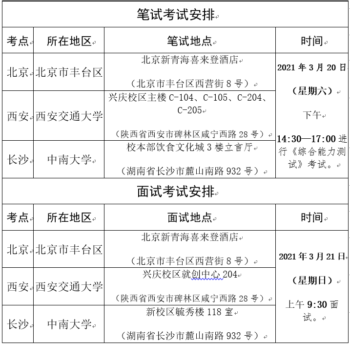 2.面试考试(2021年3月21日),因参加考生较多,需全天封闭(考试期间工作人员将代为保管电子通讯设备)。请同学们提前安排好相关行程,务必于08:30前到达各考场候考室。