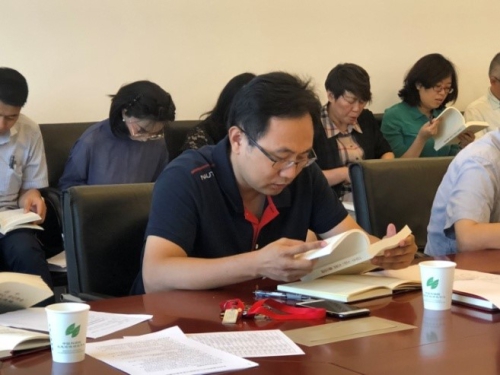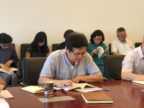6月25日,生态环境研究中心召开2019年第三次党委中心组学习(扩大)会议,深入开展“不忘初心、牢记使命”主题教育专题集中学习研讨,并听取了前期部署的开展调研情况的汇报。中心党员领导班子全体成员、党委委员、副处级及以上党员干部(含六级及以上职员)20多人参加会议。中科院“不忘初心、牢记使命”主题教育第七指导组到会指导。中心主任、党委书记欧阳志云主持学习会议并领学,党委副书记、纪委书记庄绪亮,中心副主任、党委委员吕永龙、杨敏、宋茂勇分别作重点发言。