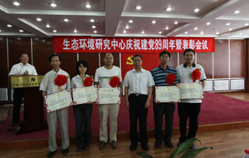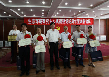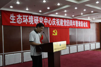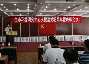 6月28日上午,生态环境研究中心庆祝建党89周年暨创先争优表彰会在生态科研楼601会议室隆重举行。中心全体党委委员、各党支部(总支)委员、先进党支部代表、优秀党务工作者、党员代表以及新入党的同志共100余人参加了会议。会议由中心党委委员、副主任江桂斌主持。