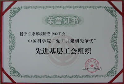 6月30日,在中国共产党成立90周年前夕,院工会在北京分院召开“中国科学院工会党工共建创先争优表彰大会”,院工会主席何岩致辞。生态环境中心工会被授予中国科学院党工共建创先争优“先进基层工会组织”荣誉称号。