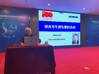 陆德培先生退休前任生态环境研究中心有机合成室研究员。他是上世纪我国人工合成结晶牛胰岛素的主要贡献者之一,是“中国科学院环境生物技术重点实验室”的前身——“粮食合成室”及“有机合成室”的奠基人之一。在报告中,陆先生结合自己几十年的科研实践经历,分别从“合成粮食的探索”和“人工合成牛胰岛素”两个方面进行了讲解。从中心粮食合成室的创始,到糖化学的研究及应用,再到最近Science杂志上发表的突破性研究进展,陆先生向大家呈现了一卷生动的科学探索史。