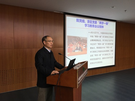 欧阳志云向与会人员传达了院党组、京区党委、北京分院分党组关于“两学一做”学习教育相关通知和会议精神,对中科院近期召开的落实中央“两学一做”学习教育工作座谈会视频会精神和中科院党组副书记、副院长刘伟平《在贯彻落实中央“两学一做”学习教育工作座谈会精神视频会议上的讲话》精神进行了及时、详细而深入的领会与学习,进一步明确了“两学一做”学习教育必须做到的“三个必须”。会议还及时对北京分院分党组 京区党委关于扎实推进京区“两学一做”学习教育工作的通知进行了学习传达。