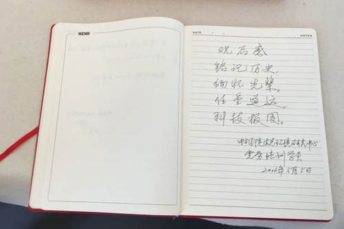 地质地球所党委书记欧龙新为全体学员进行了培训会的开班动员。在为期两天的培训中,全体学员参观了位于中国科学院大学校内的中国科学院“两弹一星”纪念馆,生态环境中心提笔留下了“铭记历史、缅怀先辈、任重道远、科技报国”的观后感,表达了生态环境中心参观者的心声,参观活动也是对“两学一做”第四专题教育“学宗旨 创新科技为民”最具体的实践,相信也会给参会的党务干部在思索开展这一专题中给予新的启迪。
