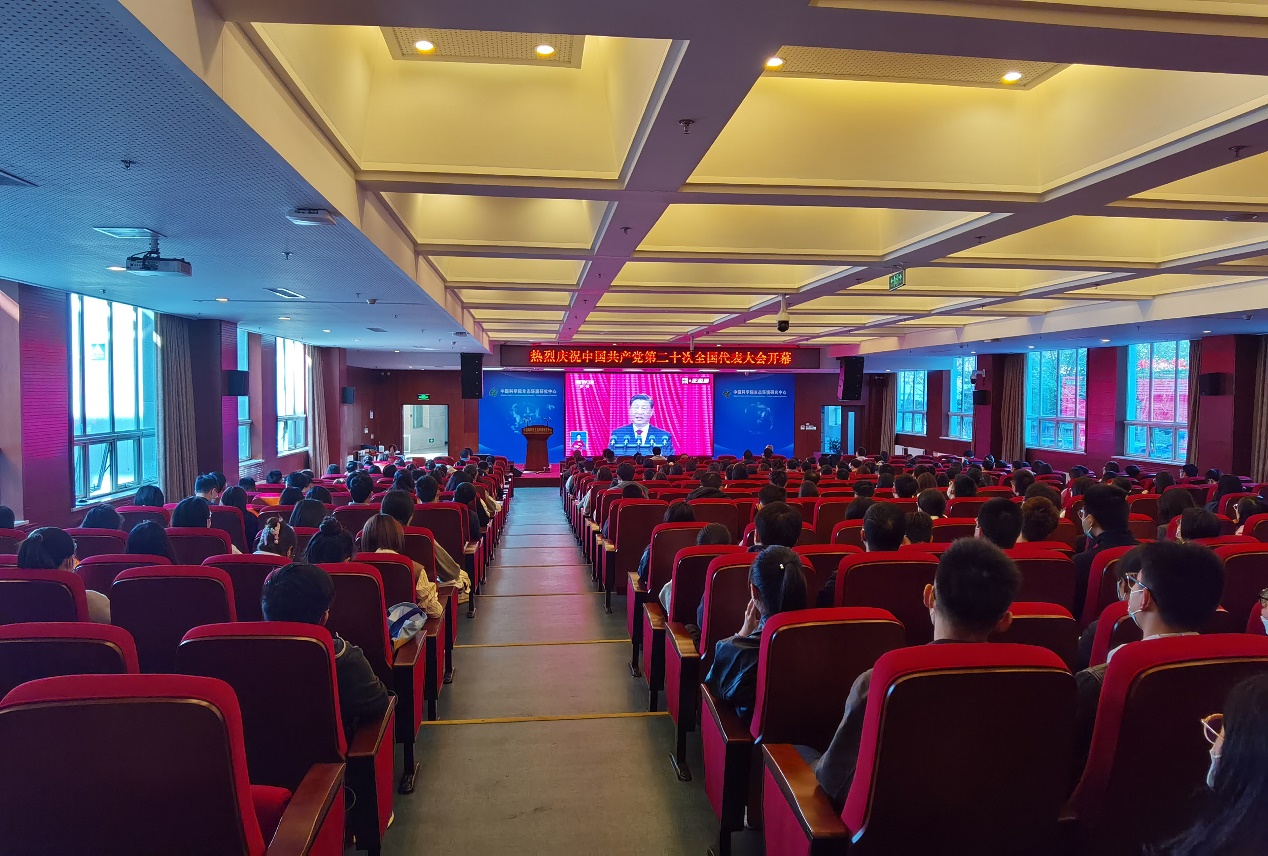 10月16日上午,举世瞩目的中国共产党第二十次全国代表大会在人民大会堂开幕。习近平总书记代表第十九届中央委员会向大会作了题为《高举中国特色社会主义伟大旗帜 为全面建设社会主义现代化国家而团结奋斗》的报告。中心党委高度重视、精心部署,组织党员、科研骨干、职工群众、研究生共300余人在环境科学楼报告厅集中收看了开幕会直播。