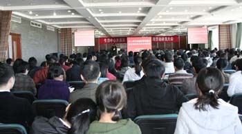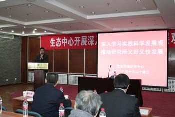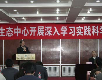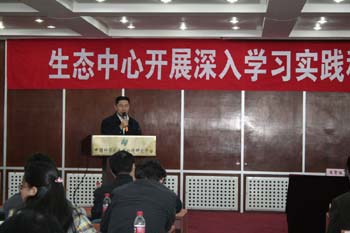10月24日上午,生态中心召开深入学习实践科学发展观动员大会,中心党委书记胡仁桥,中心主任曲久辉、副主任江桂斌参加会议,学习实践活动京区第五小组指导检查组副组长张福宽、中央文献研究室副研究员张贺福出席了动员大会。中心在职职工、离退休党员和研究生党员代表200多人参加了动员大会。会议由中心副主任江桂斌同志主持。