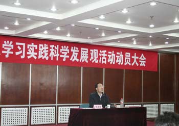 首先,胡仁桥同志作题为《深入学习实践科学发展观,推动研究所又好又快发展》的动员报告。报告分三个部分内容:一是充分认识学习实践活动的重大意义,介绍了学习实践活动与过去开展的学习教育活动的共同点和不同点,重点从四个方面强调了深入开展学习实践科学发展观活动的重要意义。二是要准确把握学习实践活动的基本要求,强调全体党员要准确把握学习实践活动的指导思想、四个目标要求和四个主要原则、以及三个阶段和十一个环节。三是提出了全面完成学习实践活动的几个问题:在学习内容上推荐了学习书目,在学习形式上对各党支部提出了建议,并从学习实践活动要解决的突出问题方面,提出设立“我为科学发展献计献策”建议箱,开展“科学发展在我身边”、“科学发展从我做起”的活动,从而帮助领导班子找准解决科技创新工作中影响和制约科学发展及党性、党风、党纪方面群众反映强烈的突出问题;从正确处理开展学习实践活动和推进科技创新工作的关系上,提出要做到两手抓、两不误、两促进。最后,他强调,学习实践科学发展观活动要与研究所创新三期各项工作紧密结合起来,通过开展学习实践活动,逐步形成符合科技创新活动规律的制度体系,推动研究所又好又快发展。