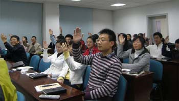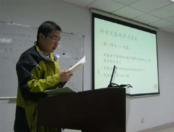 此次学习科学发展观主题支部会议主要采取重点学习理论要点和开展知识竞赛两种方式。党员们仔细阅读了中共中央宣传部组织编写的《科学发展观学习读本》,重点学习了“科学发展观第一要义是发展”、“科学发展观核心是以人为本”、“科学发展观基本要求是全面协调可持续”和“科学发展观根本方法是统筹兼顾”等内容。阅读学习后,为了检验和巩固大家的学习成果,支部举行了抢答式知识竞赛。开赛前,主持人孙宇飞同志通过回顾历史的经验教训,再次向大家强调了深入学习实践科学发展观的重要性。通过紧张激烈的知识竞赛,党员们巩固了在动员大会和本次支部大会上学到的科学发展观相关理论知识。知识竞赛后,党员们表示,这种阅读学习和知识竞赛相结合的方法很有助于调动大家理论学习的积极性,提高了理论学习的效果。