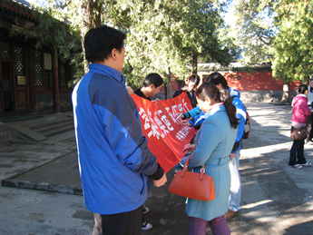 为庆祝党的十七大胜利召开及宣传绿色奥运理念,增强人们的环保意识,加强环境保护工作,全面落实科学发展观,2007年11月3日,研究生第三党支部组织全体党员和入党积极分子前往颐和园开展绿色奥运宣传活动。通过发放宣传资料,向游客宣传环保知识,并号召大家从我做起,从身边做起,积极行动起来爱护我们的家园,游客们还在特制的“绿色奥运,环保先行”的条幅上进行了签名。